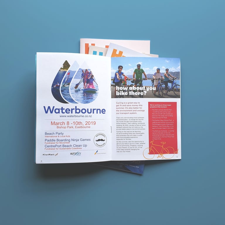 Central to the concept was the Hutt River, the lifeblood of the city and a unifying thread through its communities. This was referenced in the logo, anchoring the publication in a shared sense of place. Recognising the Hutt’s diverse population, we developed a strong and approachable masthead, along with a distinctive illustrative style, colour palette, photographic approach, and written voice. Together, these elements created an inclusive publication that engaged and resonated with every part of the community.