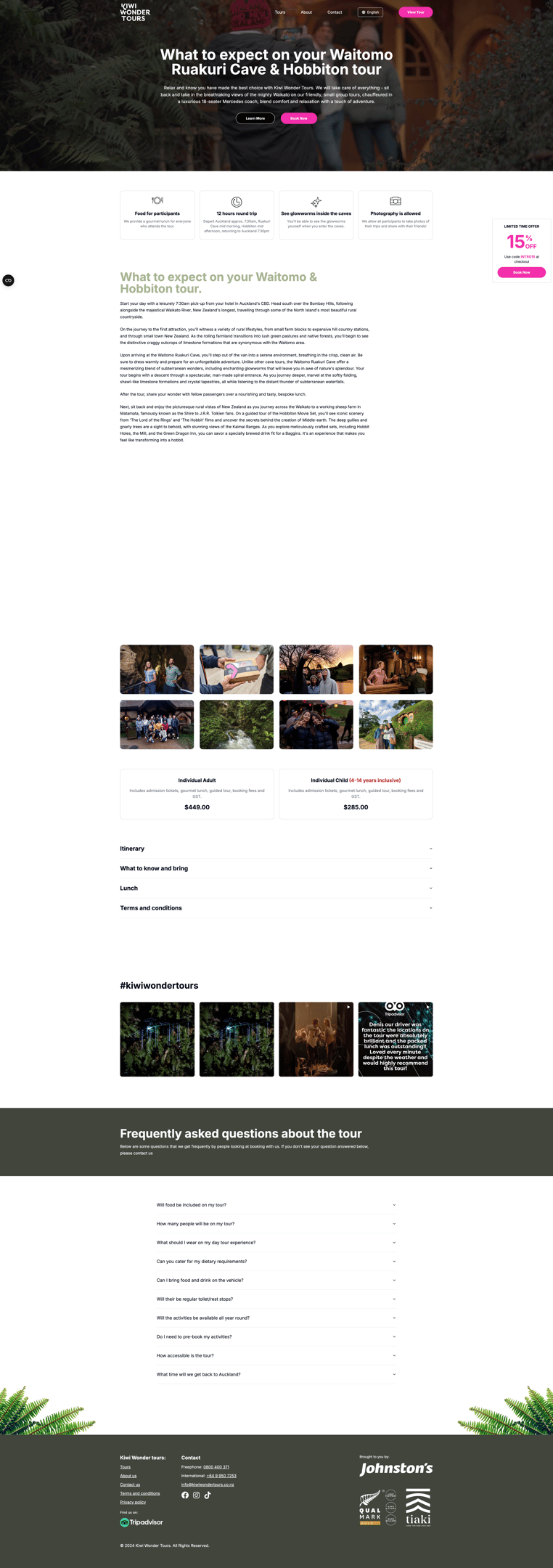 Johnston’s Coachlines approached PORT Group to support the launch of Kiwi Wonder Tours’ enchanting day tours to iconic destinations such as Hobbiton and the Ruakuri Caves. A captivating digital booking platform was essential, one that reflected the magic of the journeys themselves.