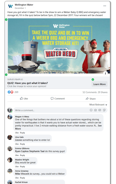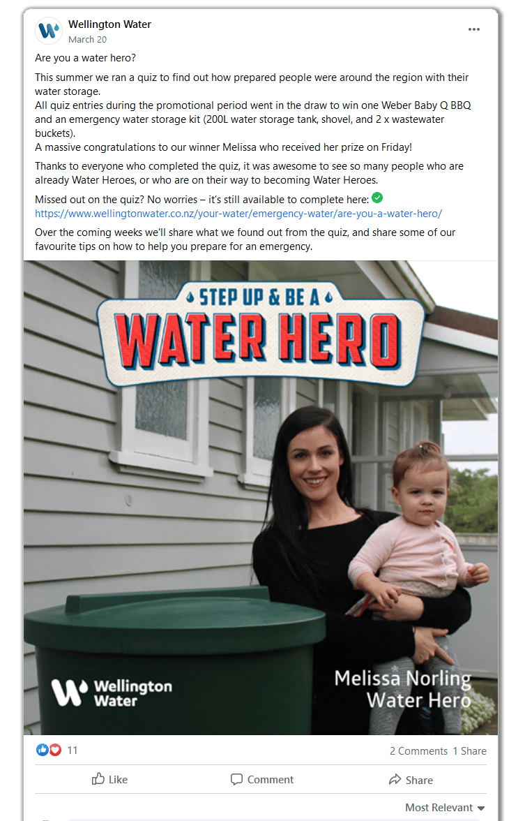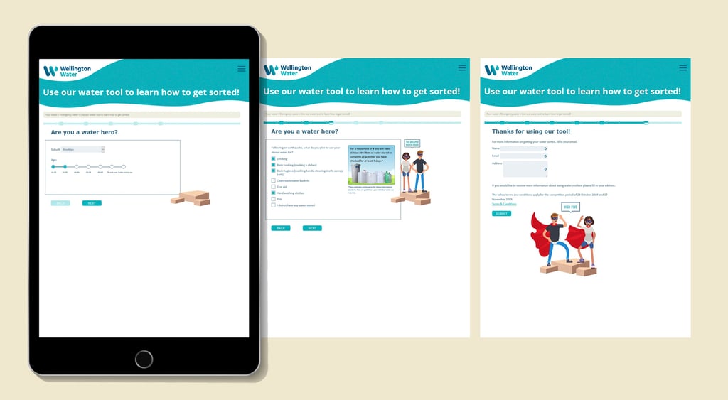 A key component was an online tool with two core functions. First, it informed residents how much water they needed to store to get through a large-scale disaster. Second, it captured data for Wellington Water, providing valuable insight into how prepared the community is for such an event.